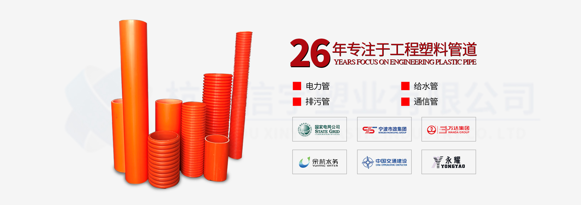 杭州信宇塑業(yè)有限公司創(chuàng)立于1993年,注冊(cè)資金10080萬(wàn)元,是一家集塑料管道研發(fā)、制造、銷(xiāo)售為一體的國(guó)家高新技術(shù)企業(yè)。公司總部坐落于美麗的杭州西子湖畔,目前在杭州市黃湖工業(yè)園、安徽郎溪新發(fā)工業(yè)園建有兩大管道生產(chǎn)基地,總占地面積11萬(wàn)平方米。此外,公司還擁有一家獨(dú)資子公司—安徽信宇管業(yè)科技有限公司。公司現(xiàn)有全自動(dòng)塑料擠出機(jī)生產(chǎn)線52條,高精度模具500余套,年生產(chǎn)能力達(dá)10萬(wàn)噸。公司專業(yè)生產(chǎn)“信宇中塑”牌HDPE給排水管、HDPE中空壁纏繞管、…